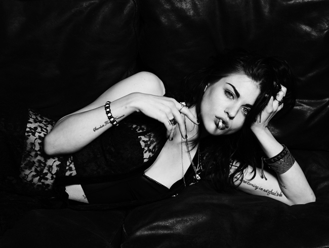 Em um editorial ousado, Frances Bean Cobain, a filha do líder do Nirvana, aparece fumando, tatuada e em poses sensuais através das lentes do fotógrafo e estilista francês Heidi Slimane.